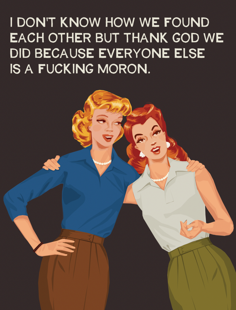 I don't know how we found each other but thank God we did because everyone else is a fucking moron.