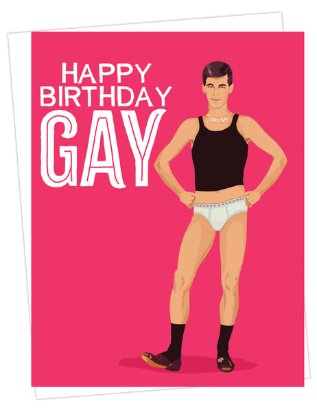 His little necklace says TRASH :) Great printing, bright colors, quality, responsibly forested paper.